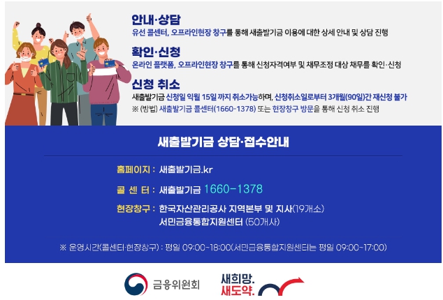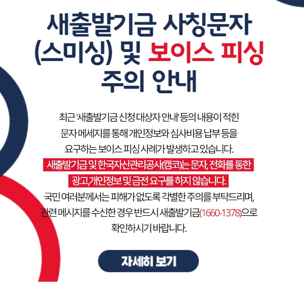 - 새출발기금에 대한 문의는 대표 콜센터(1660-1378)를 통해 가능하며, 보이스피싱에 주의해야 합니다.
