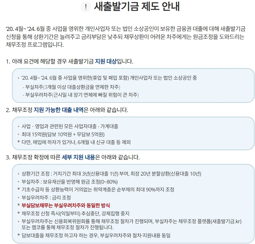 - 이 프로그램은 상환기간을 늘리고 금리부담을 낮추며, 필요한 경우 원금조정도 지원합니다.