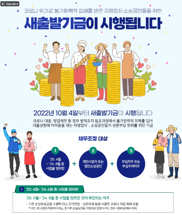 소상공인 새출발기금은 코로나19로 인해 어려움을 겪은 소상공인과 자영업자들의 경제적 회복을 돕기 위한 중요한 지원 프로그램입니다.